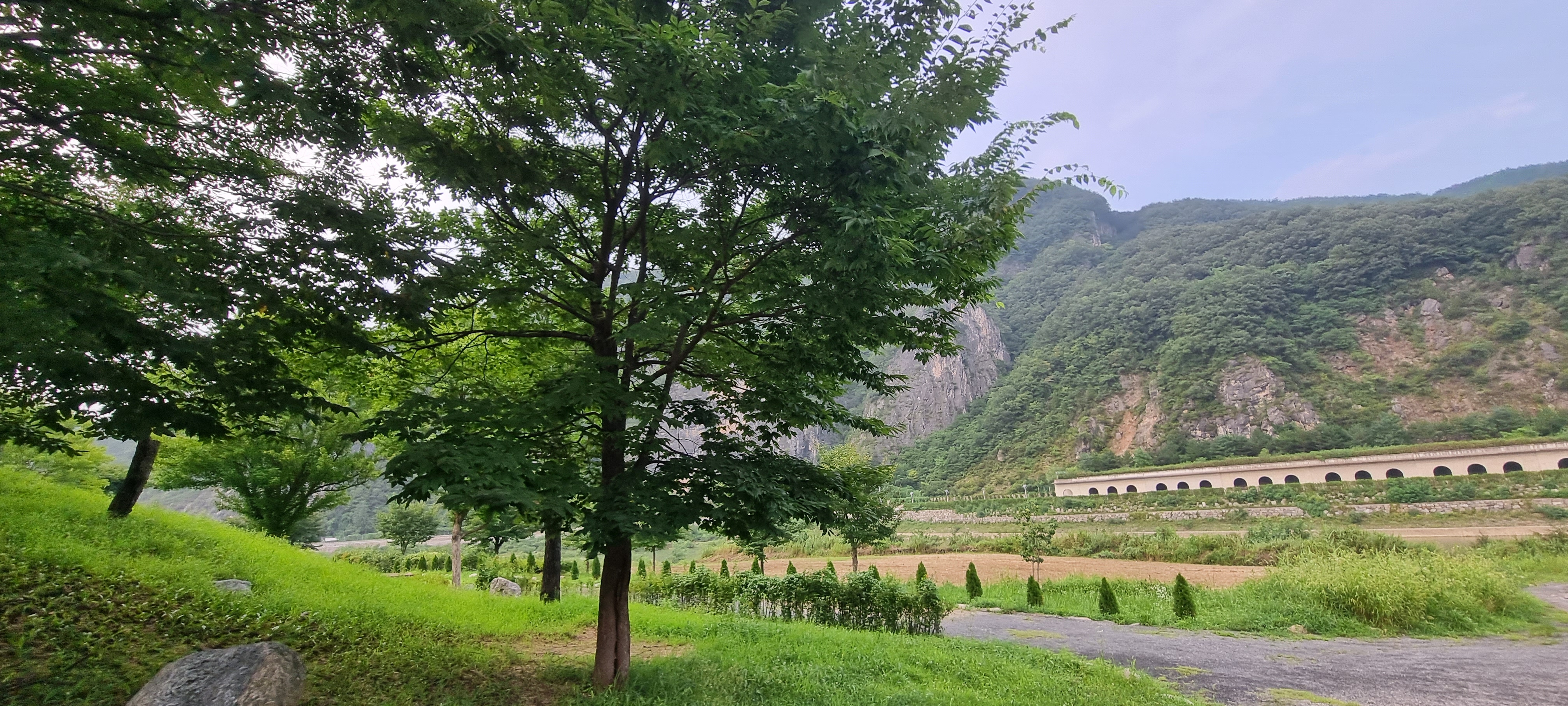 야외 바베큐장의 풍경이다. 멀리서 볼 땐 멋있지만 실제로 바베큐장은 고기굽는 연기로 인해 뿌옇다.